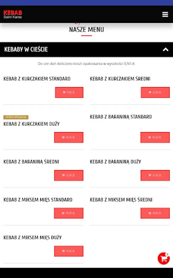 Application for ordering food from the Saint Karas restaurant in Bytom.