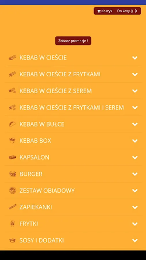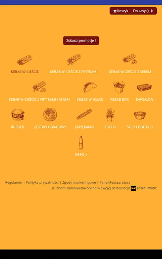 An application for ordering food from the Kebab u Łysego restaurant in Bytom.