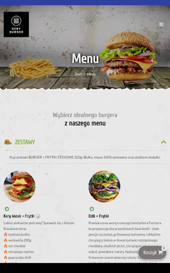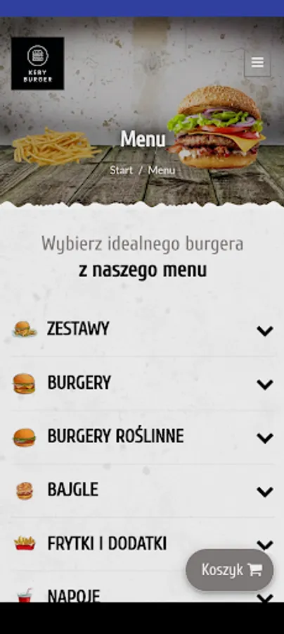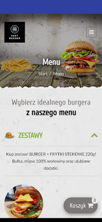 Application for ordering food from the KERY BURGER restaurant in Siemianowice.