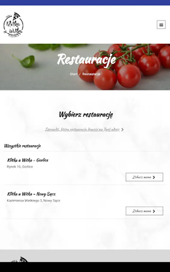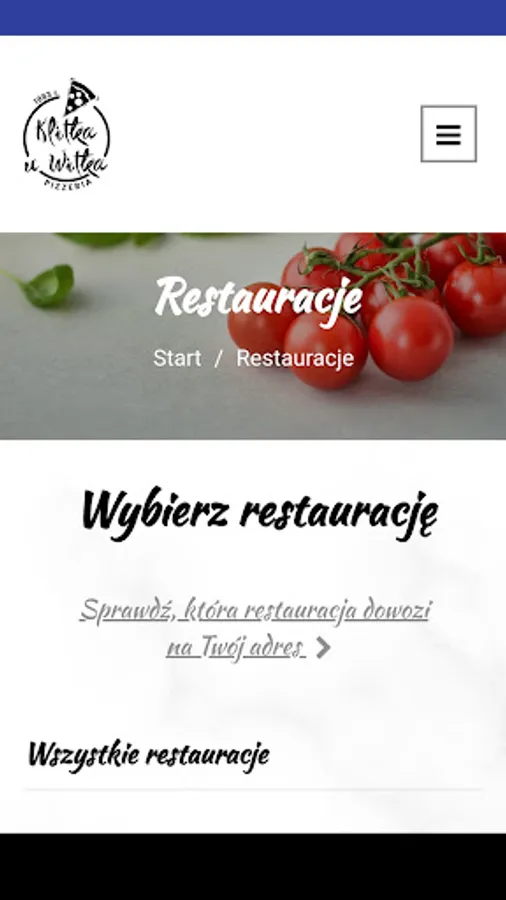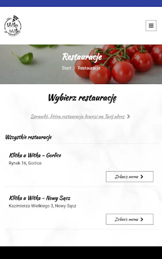 Application for ordering food from the Klitka u Witka restaurant in Gorlice, Nowy Sącz.