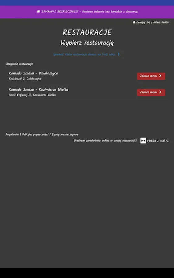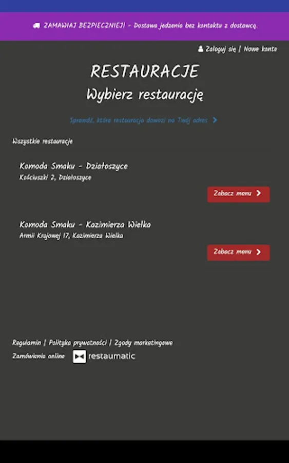 Application for ordering food from the Komoda Smaku restaurant in Kazimierza Wielka.