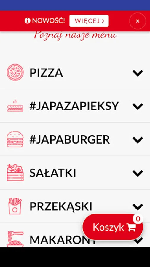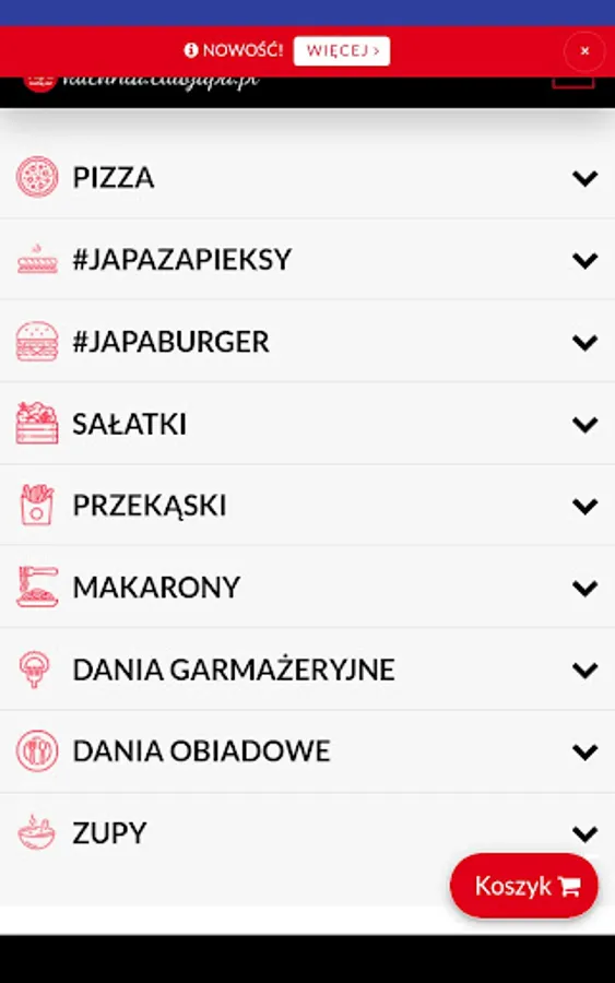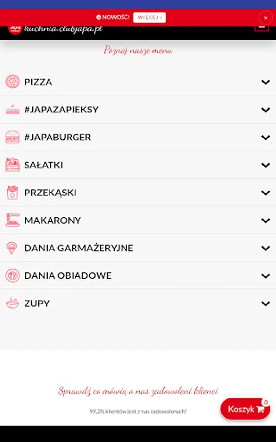 Application for ordering food from the Kuchnia Club Japa restaurant in Przemyśl.