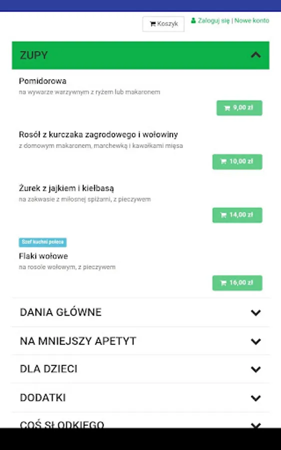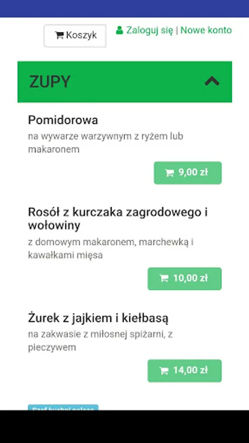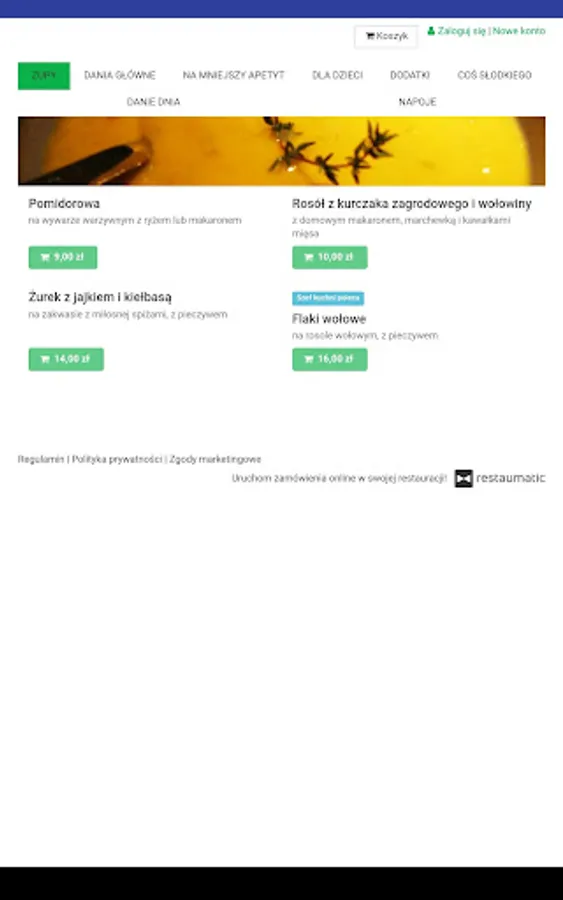 Application for ordering food from the Miłosna Kuchnia restaurant in Warsaw.