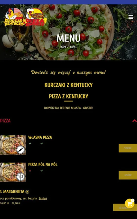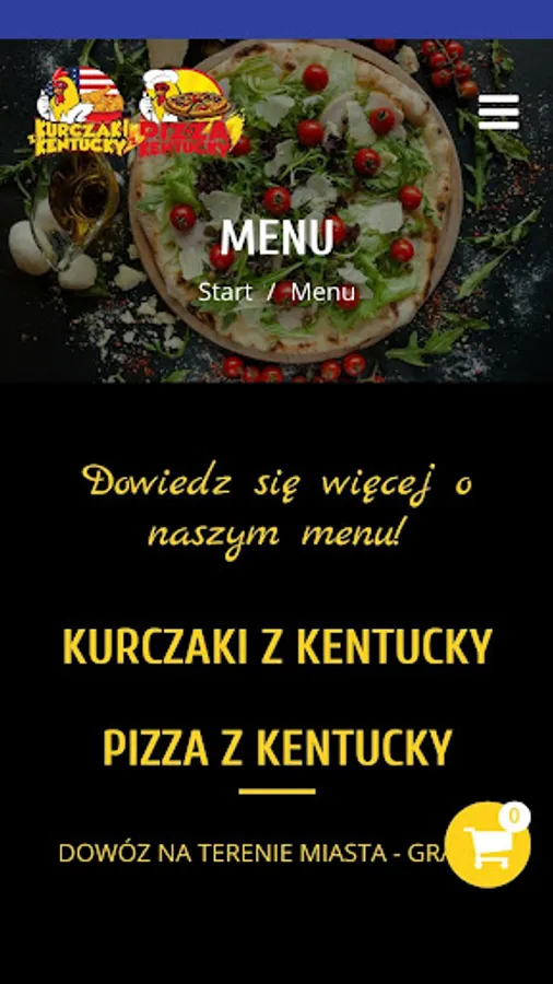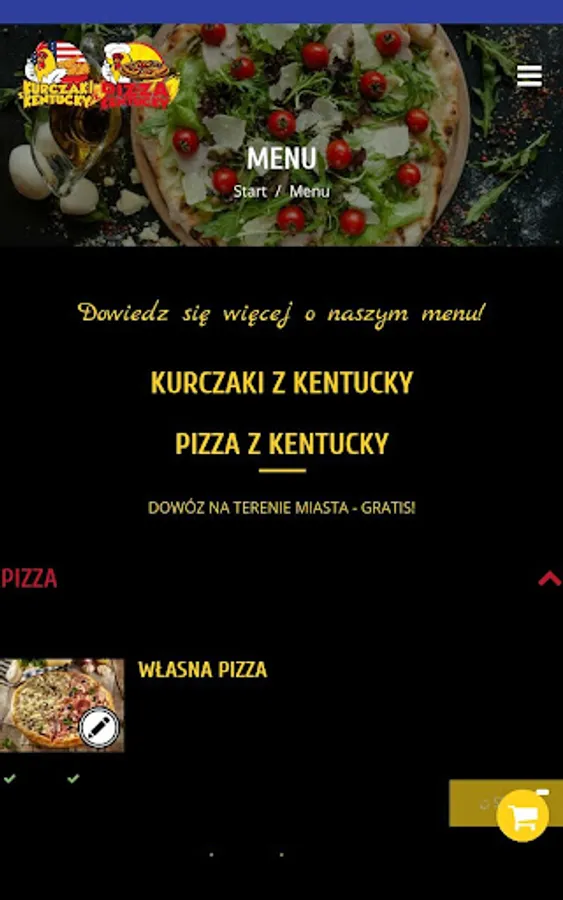 An app for ordering food from Kentucky Chicken Restaurant. Pizza from Kentucky in Bartoszyce.