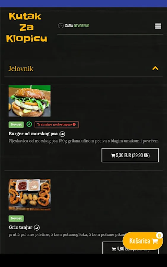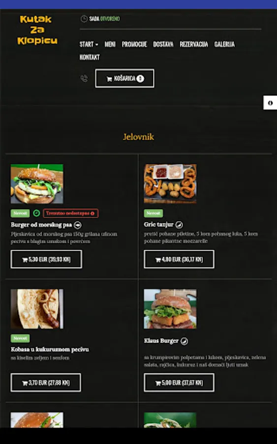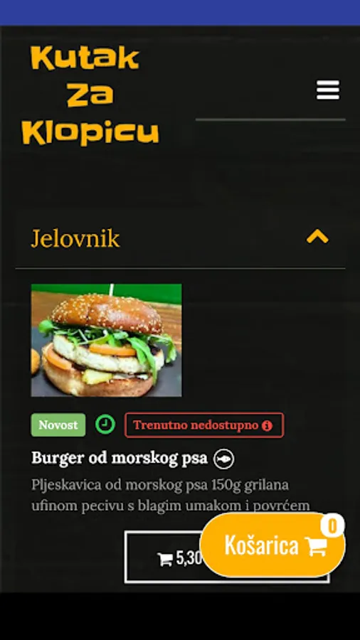 Mobile application for ordering food directly from the Kutak za Klopica restaurant.