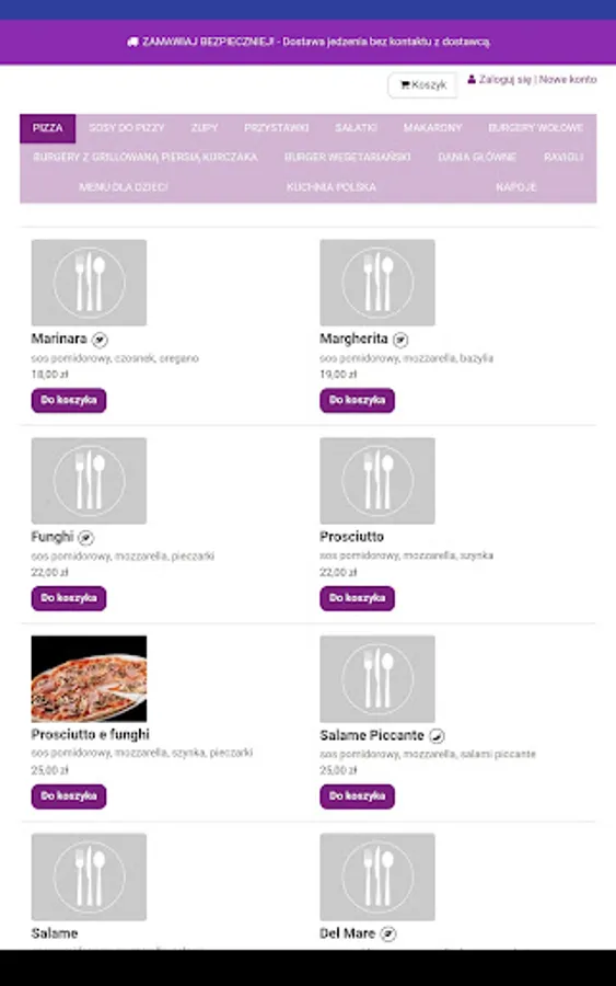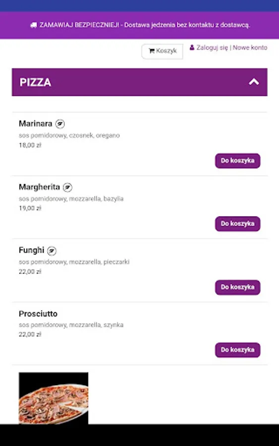 Application for ordering food from the Libero Club Bistro & Pizza restaurant in Węgrów.