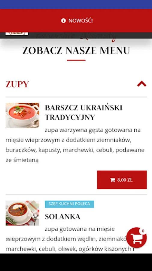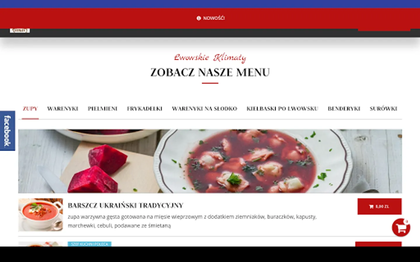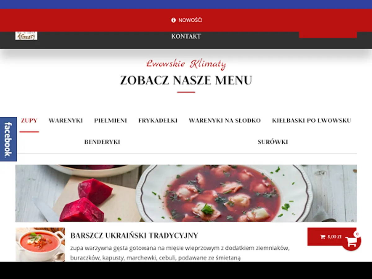 Application for ordering food from the restaurant Lwowskie Klimaty in the city of Lodz.