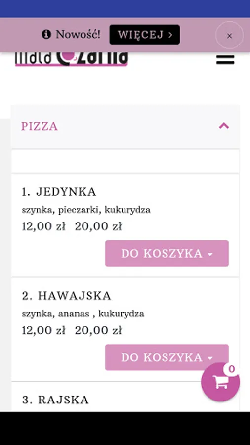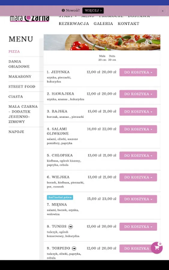 Application for ordering food from the MAŁA CZARNA restaurant in Przemyśl.