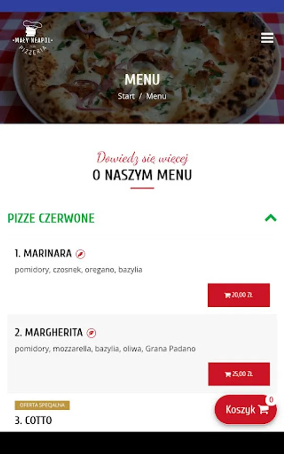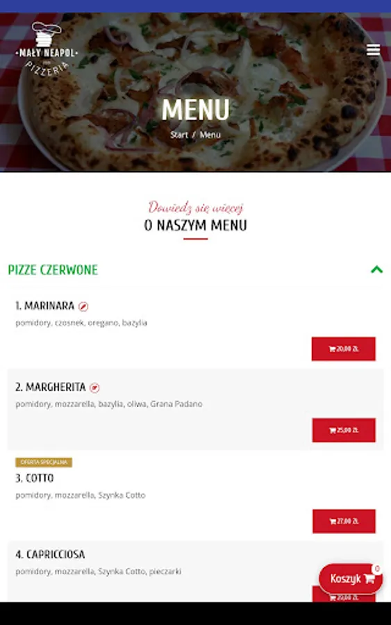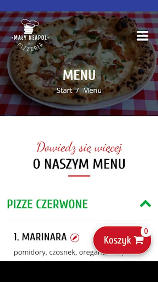 An application for ordering food from the Mały Napol restaurant in Płońsk.