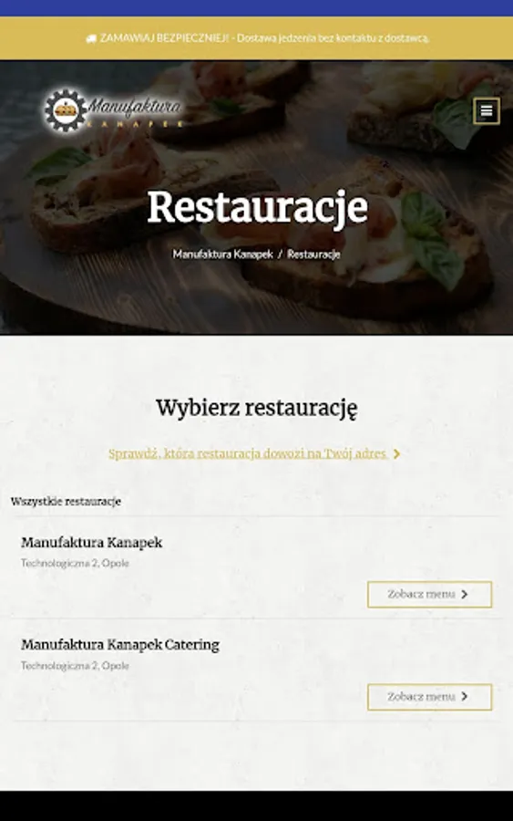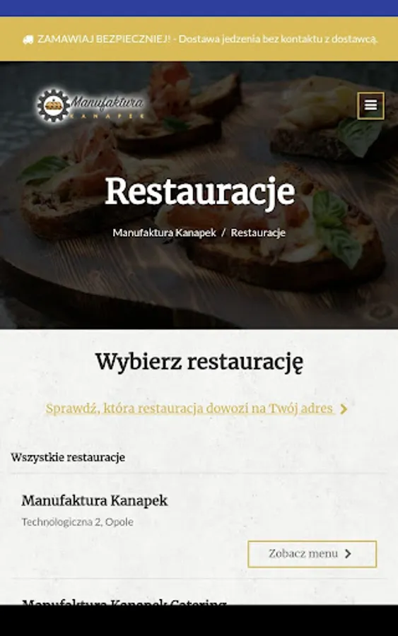 Application for ordering food from the Manufaktura Kanapek restaurant in Opole.