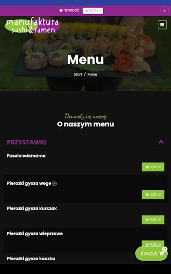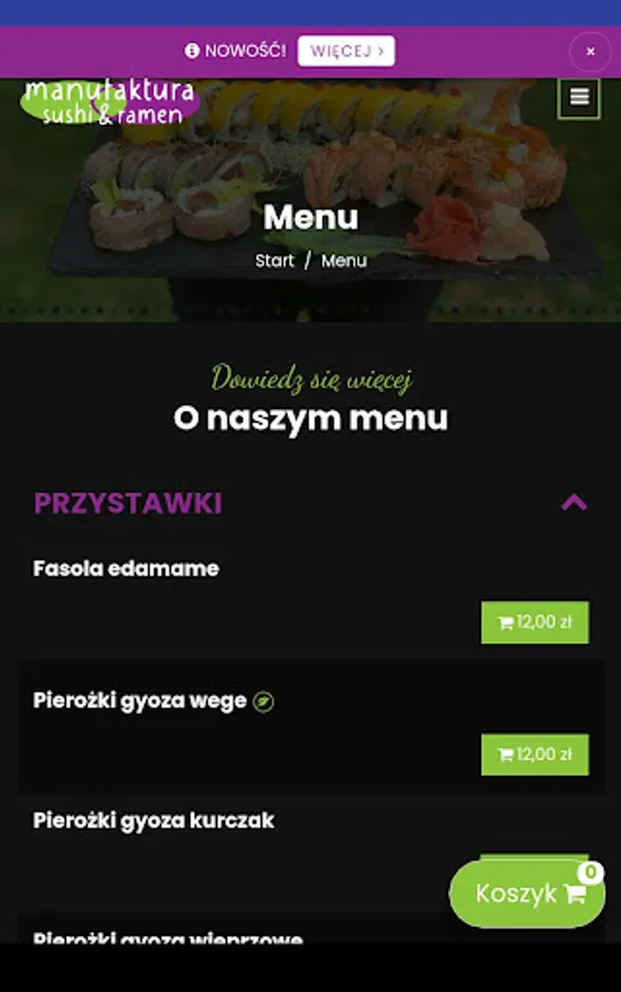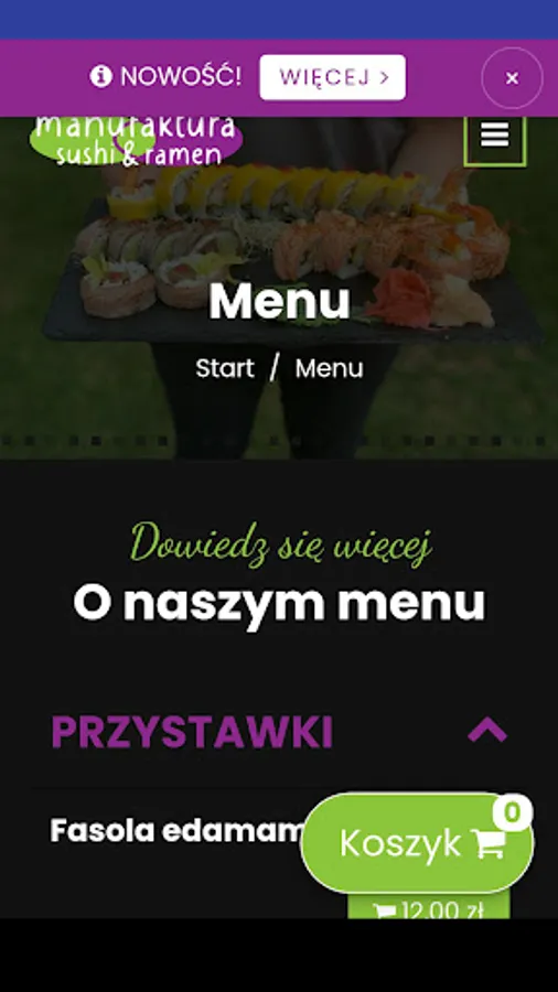 Application for ordering food from the Manufaktura Sushi & Ramen restaurant in Nadarzyn.