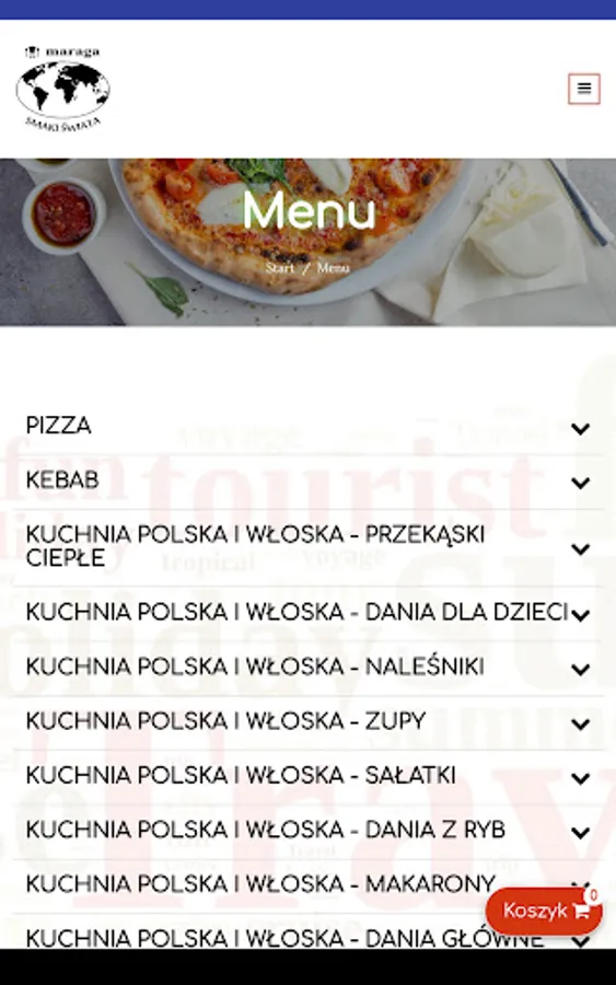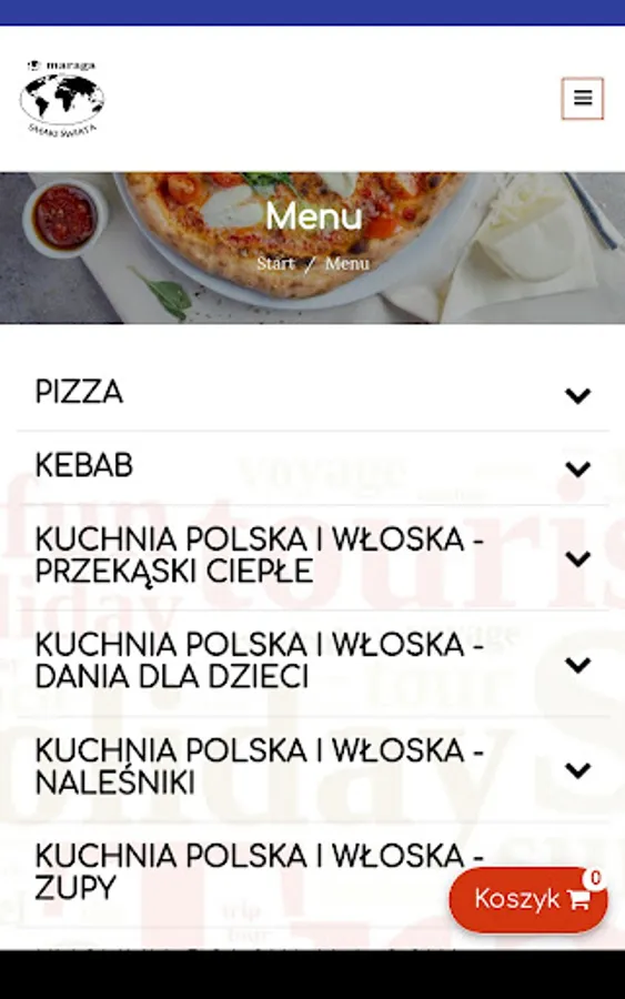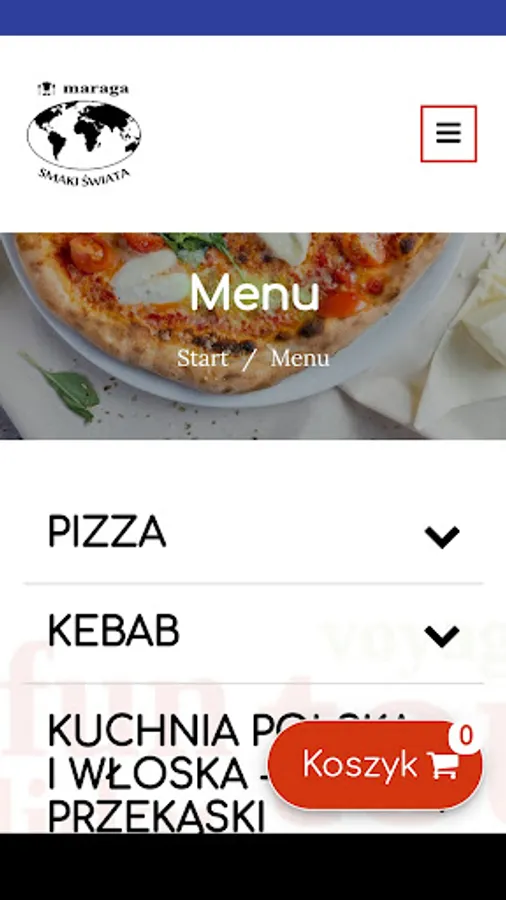 An application for ordering food from the Maraga Smaki Świat restaurant in Pruszków.