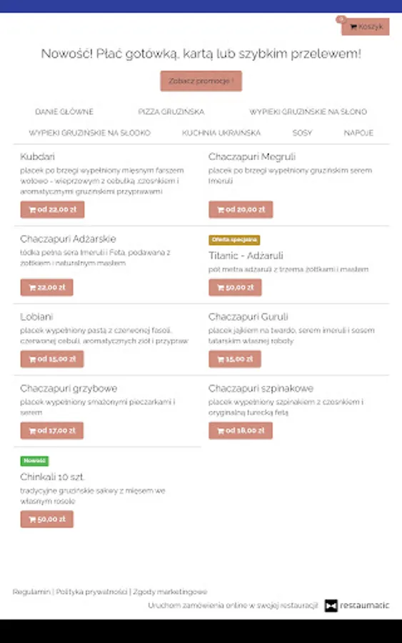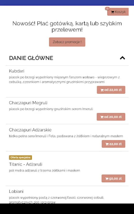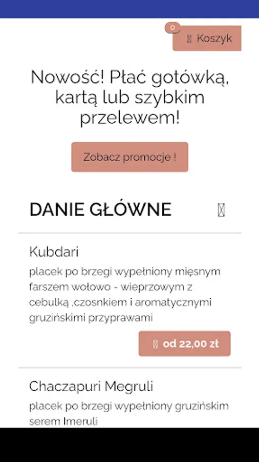 Application for ordering food from Martiashvili Szczecin restaurant in Szczecin.