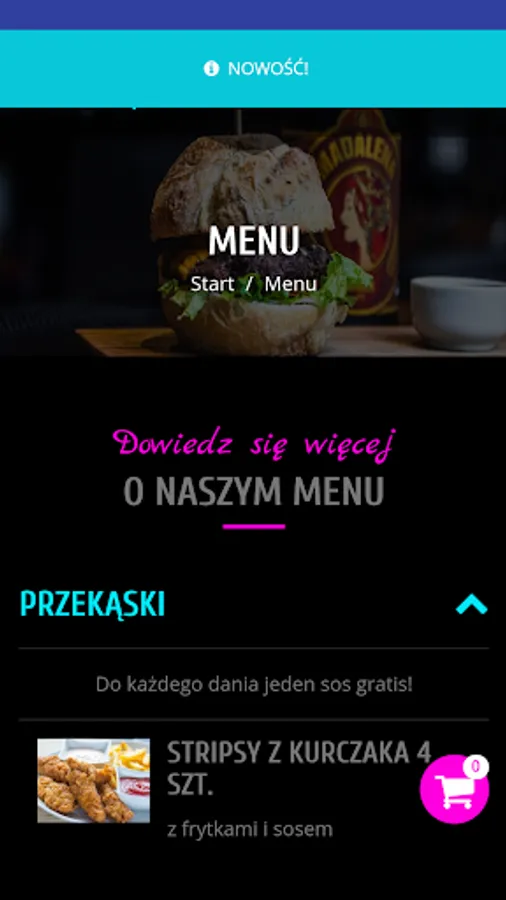 Application for ordering food from the Miami Burger restaurant in Żory.