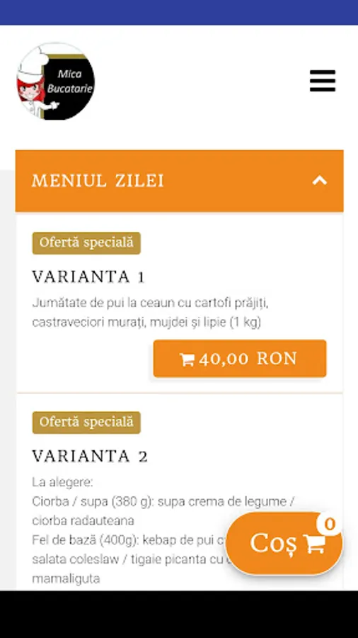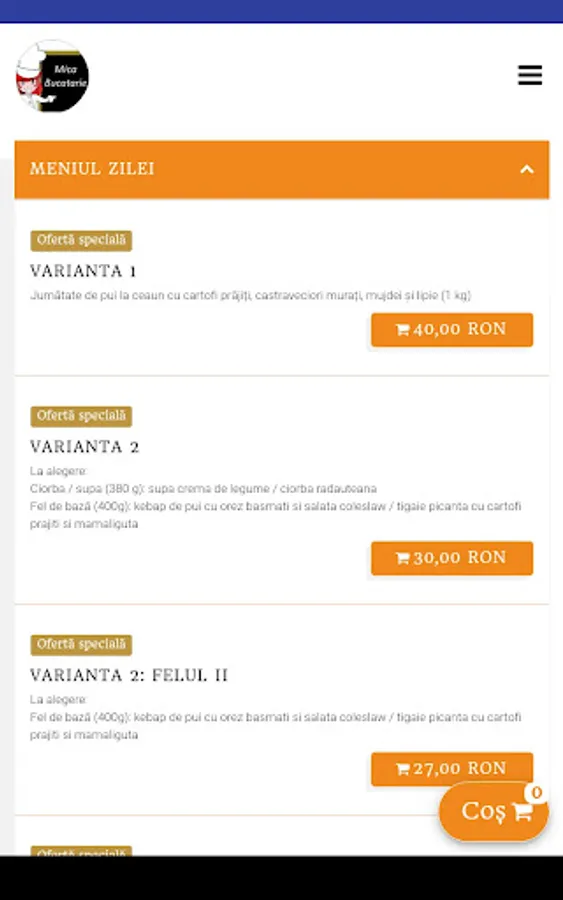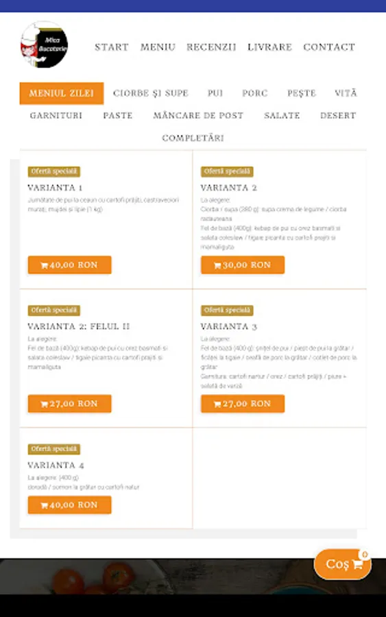 Food order form from the Mica Bucatarie restaurant.