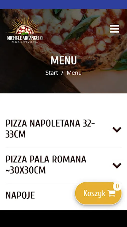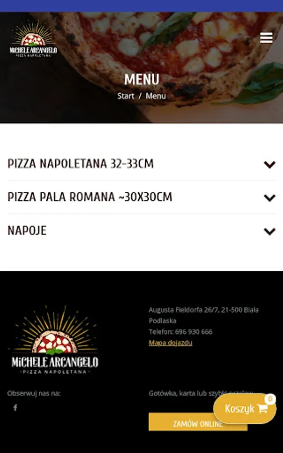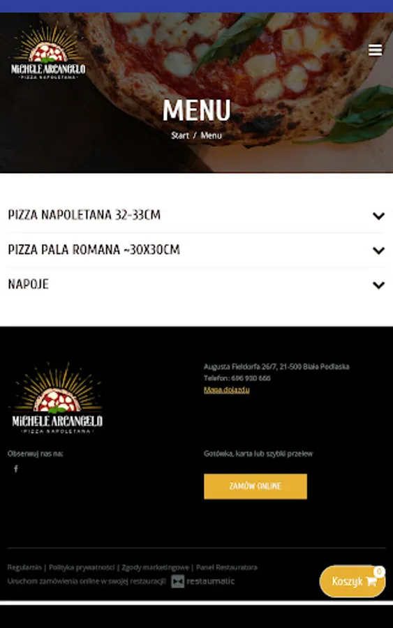 An application for ordering food from the MICHELE ARCANGELO PIZZERIA restaurant in Biała Podlaska.