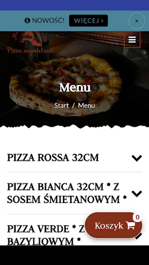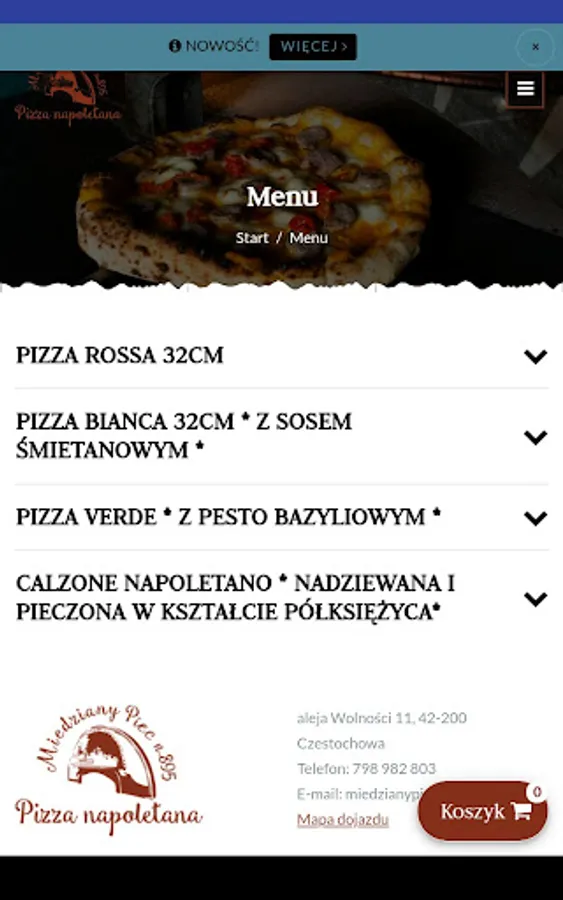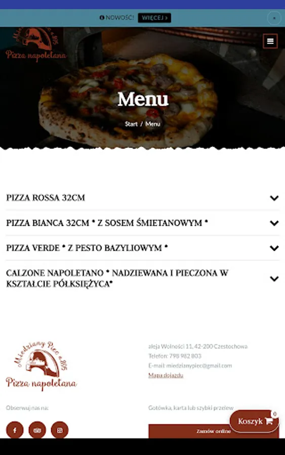 An application for ordering food from the Miedziany Piec restaurant in Czestochowa.