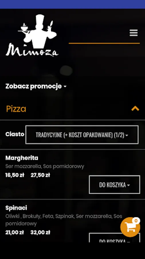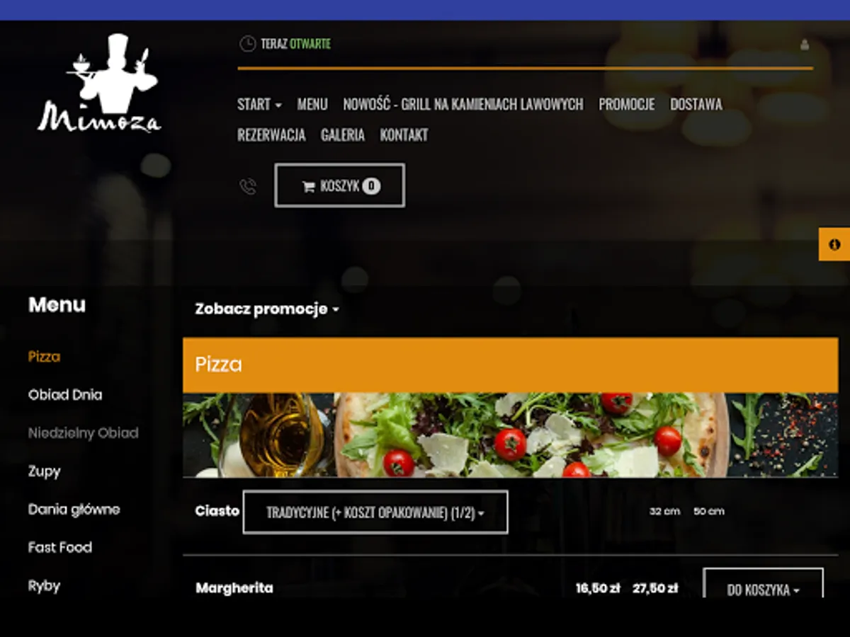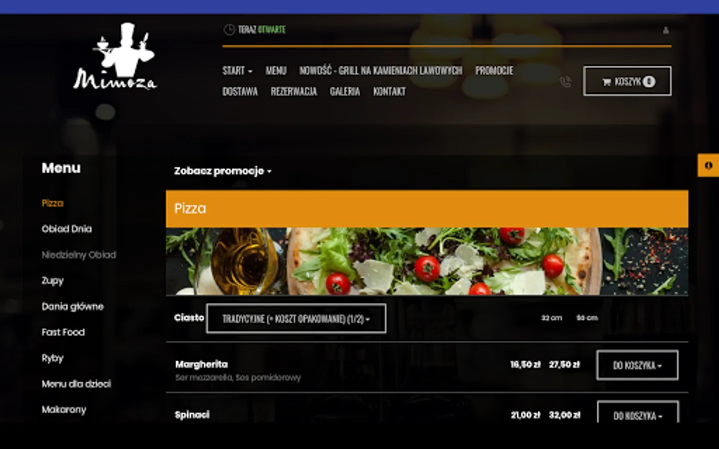 Application for ordering food from the Mimoza restaurant in Kęty.