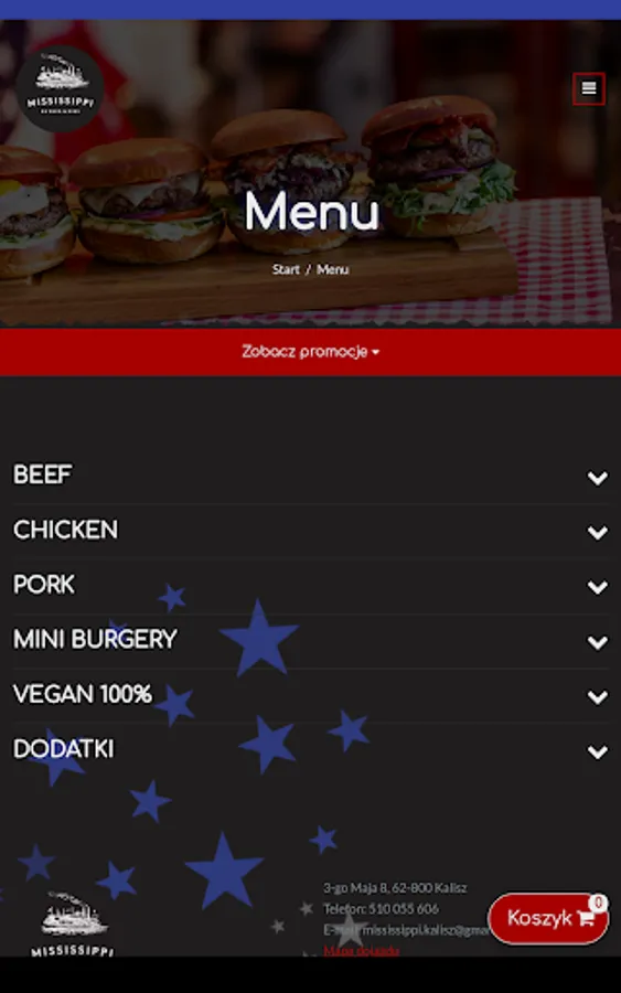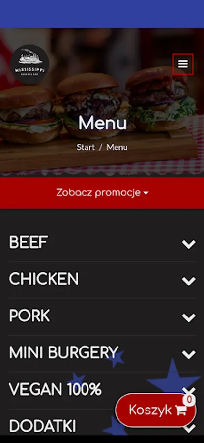 Application for ordering food from the Mississippi Burger & Ribs restaurant in Kalisz.