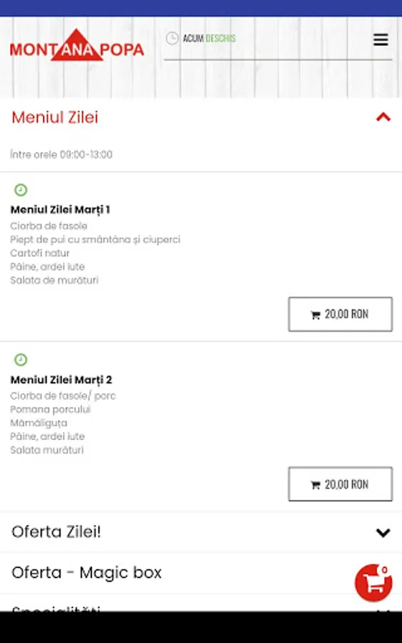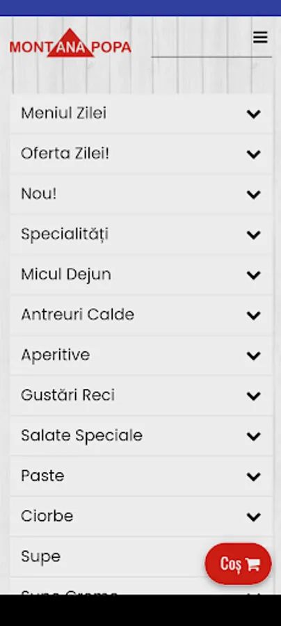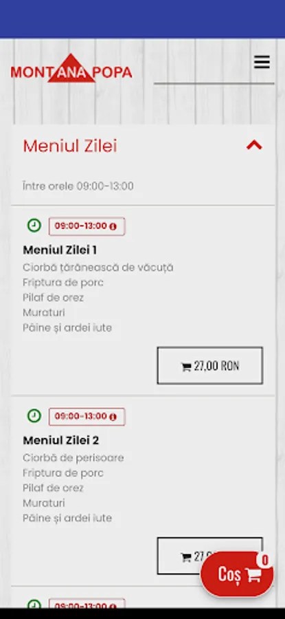 Food order form at Montana Popa Restaurant.