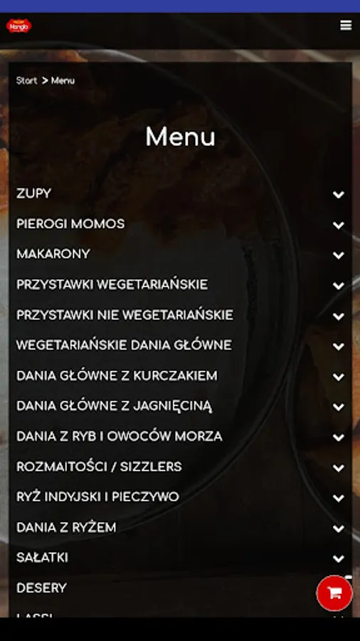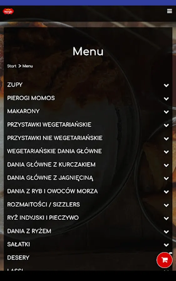 An application for ordering food from the Nanglo Restaurant in Szczecin.