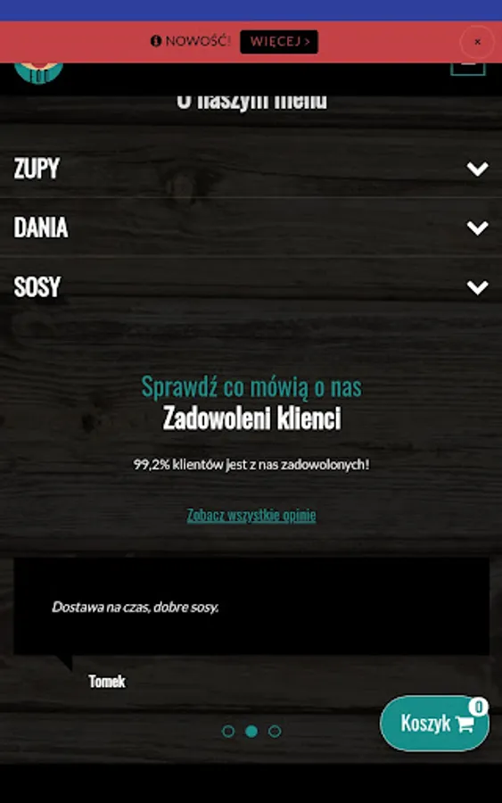Application for ordering food from the NaOkołoo restaurant in Tarnowskie Góry.