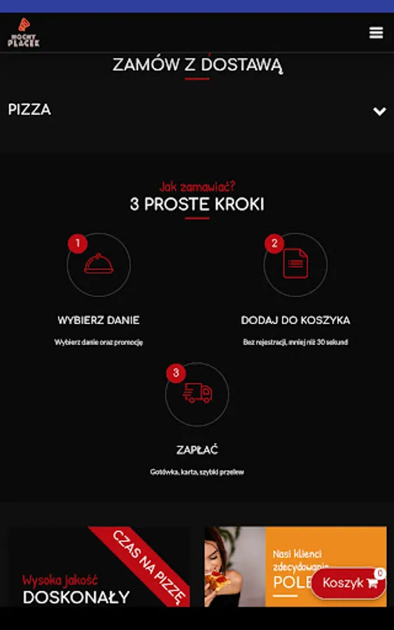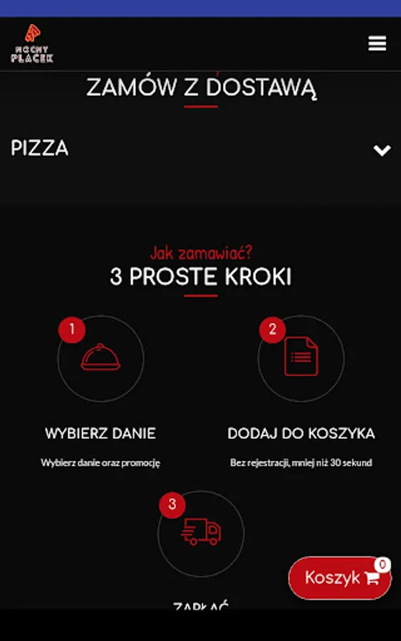 An application for ordering food from the Nocny Placek restaurant in Łódź.