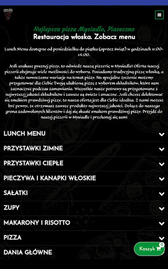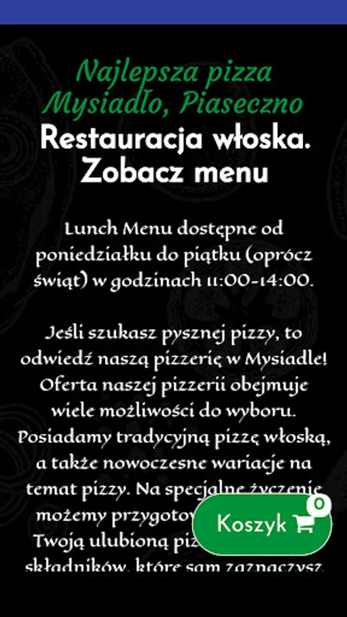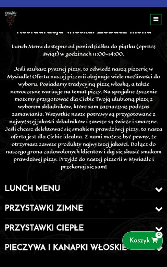 An application for ordering food from the Nowa Bajka restaurant in Mysiadło.