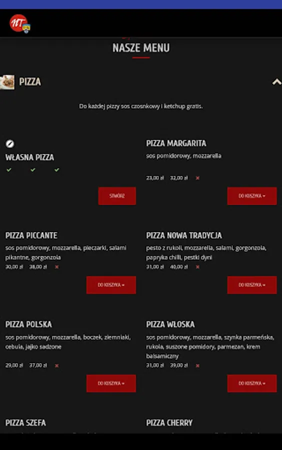 Application for ordering food from the Nowa Tradycja restaurant in Mielec.