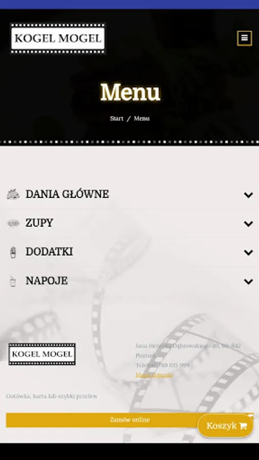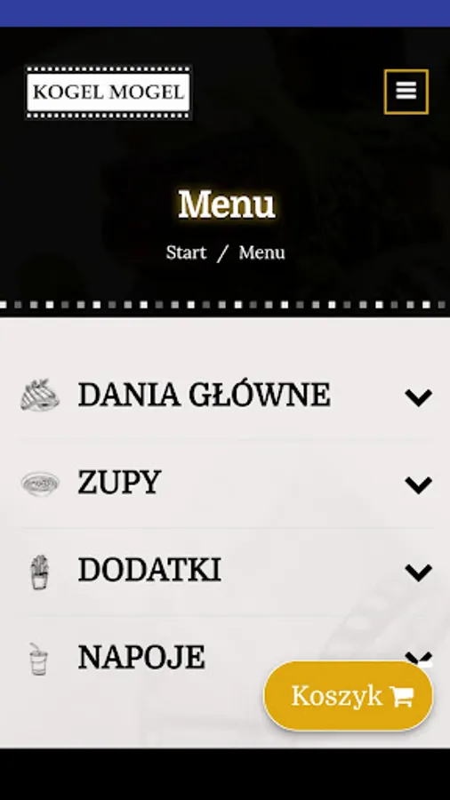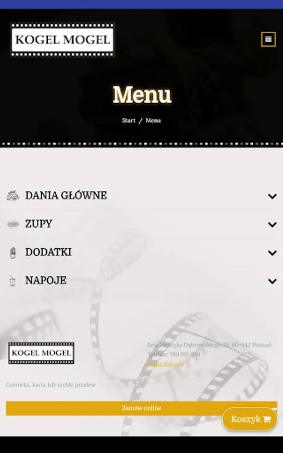 Application for ordering food from the Obiady Domowe restaurant "Kogel Mogel" in Poznań.