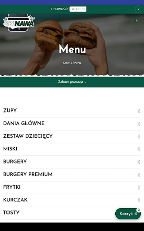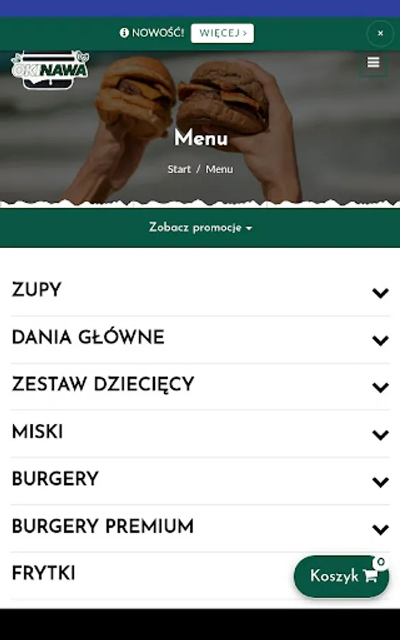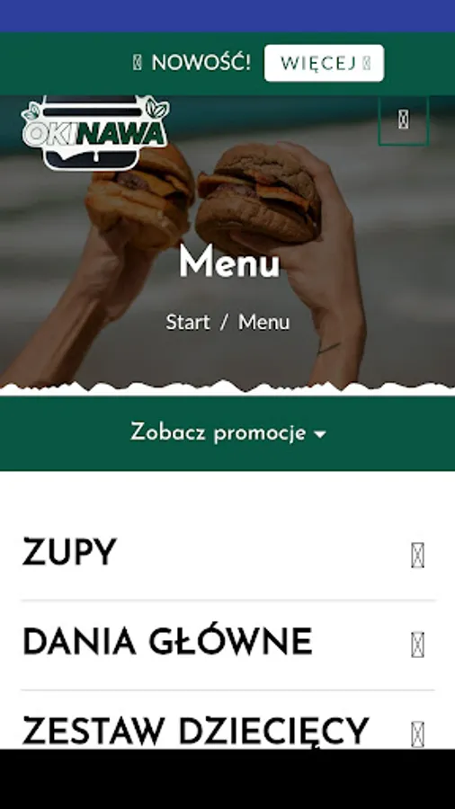 Application for ordering food from the Okinawa restaurant in Lesczyny.