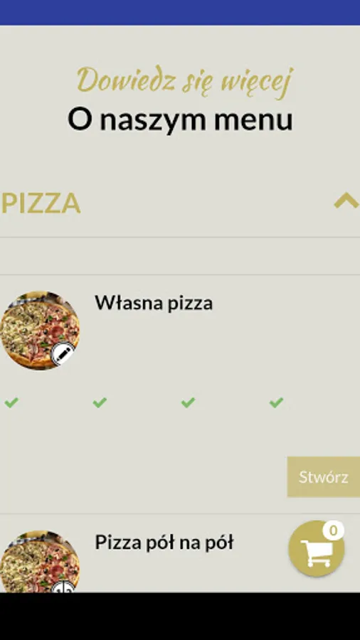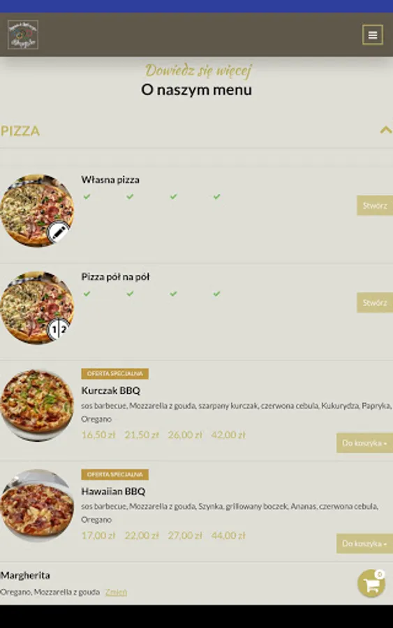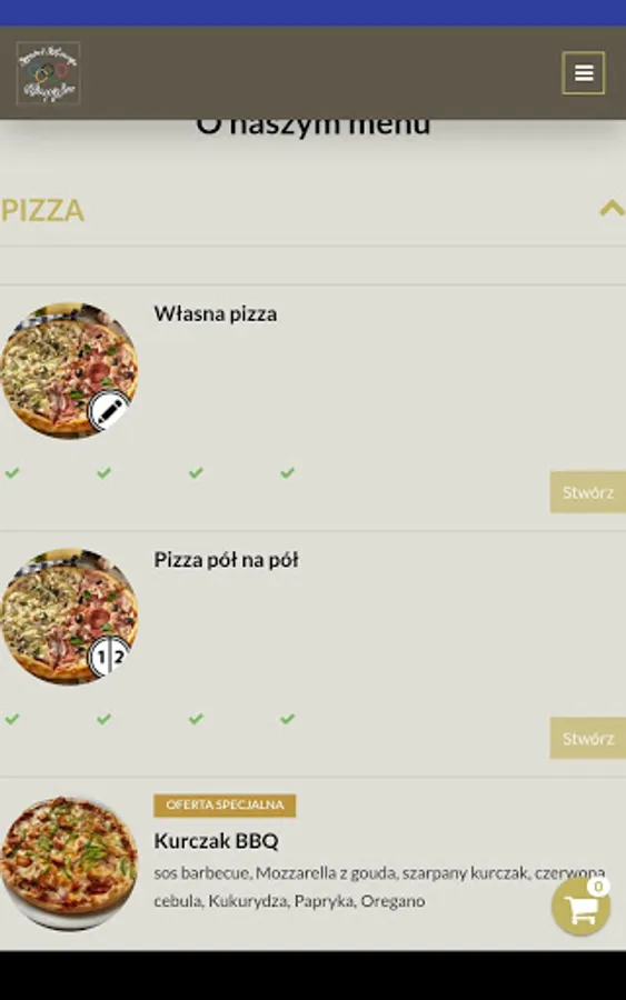 Application for ordering food from Olimpijska restaurant in Bytom.