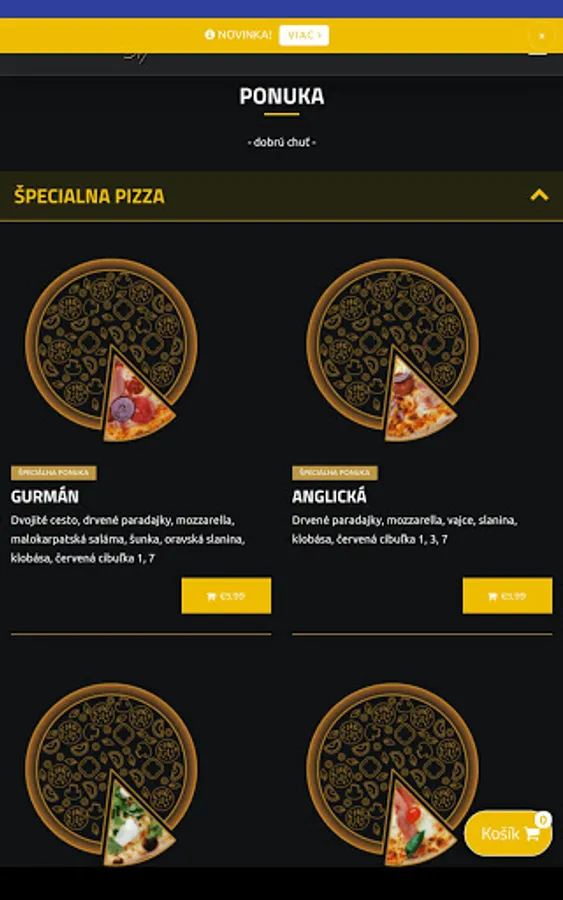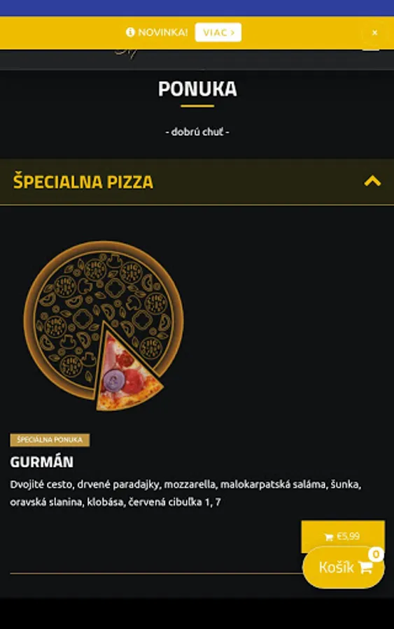 Mobile application to order food directly from the restaurant P1zza Šéf.