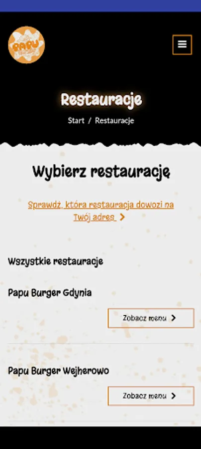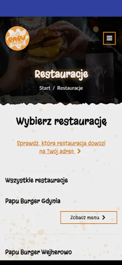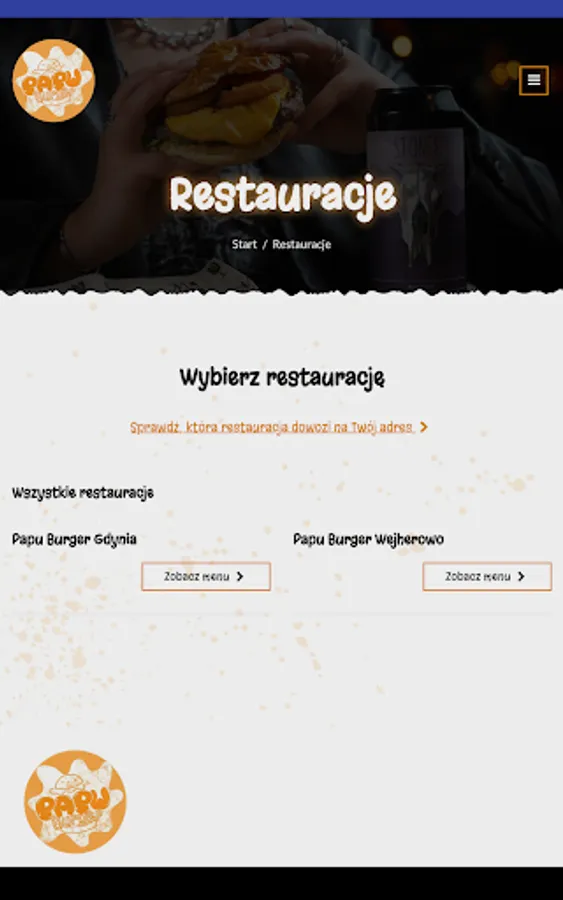 Application for ordering food from the Papu Burger restaurant in Gdynia.