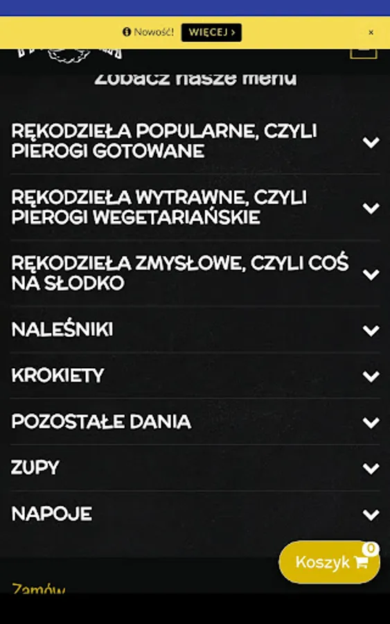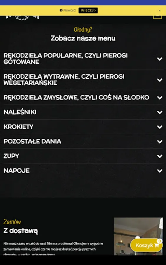 An application for ordering food from the Pierogarnia restaurant in Kraków.