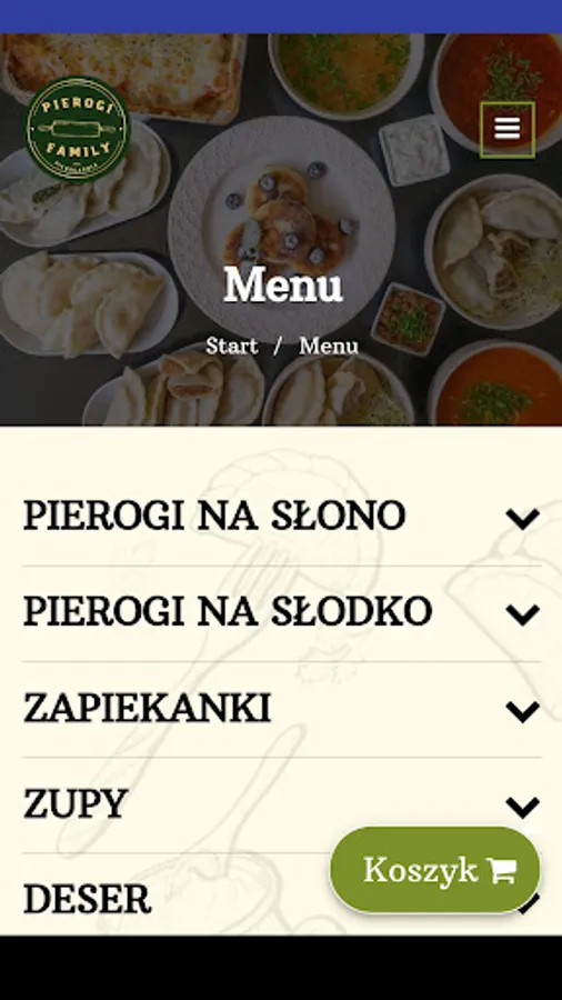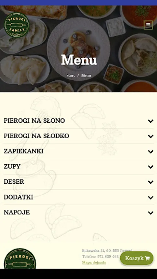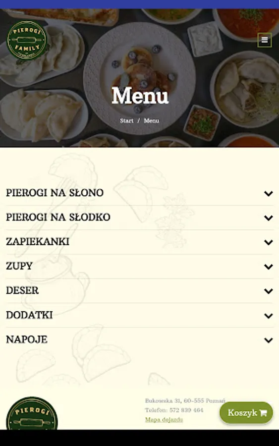 An application for ordering food from the Pierogi Family Pierogarnia restaurant in Poznań.