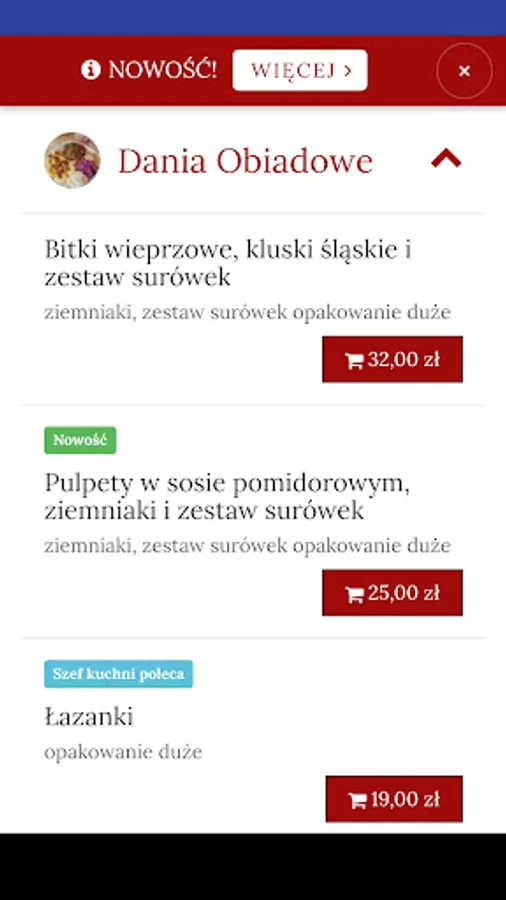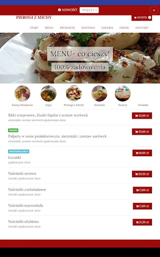Application for ordering food from the Pierogi z Michy restaurant in Gliwice.