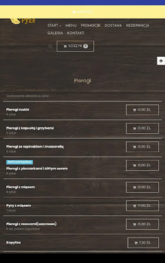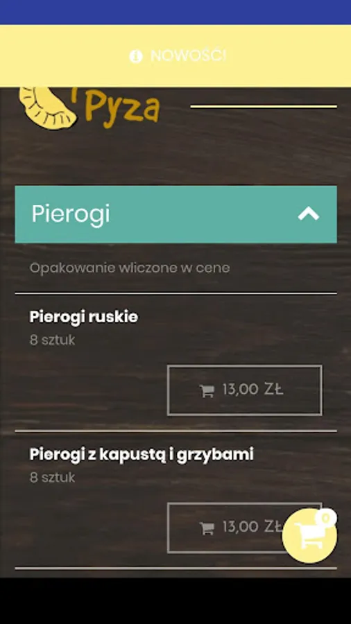 Application for ordering food from the Pierożek and Pyza restaurants in Szczecin.