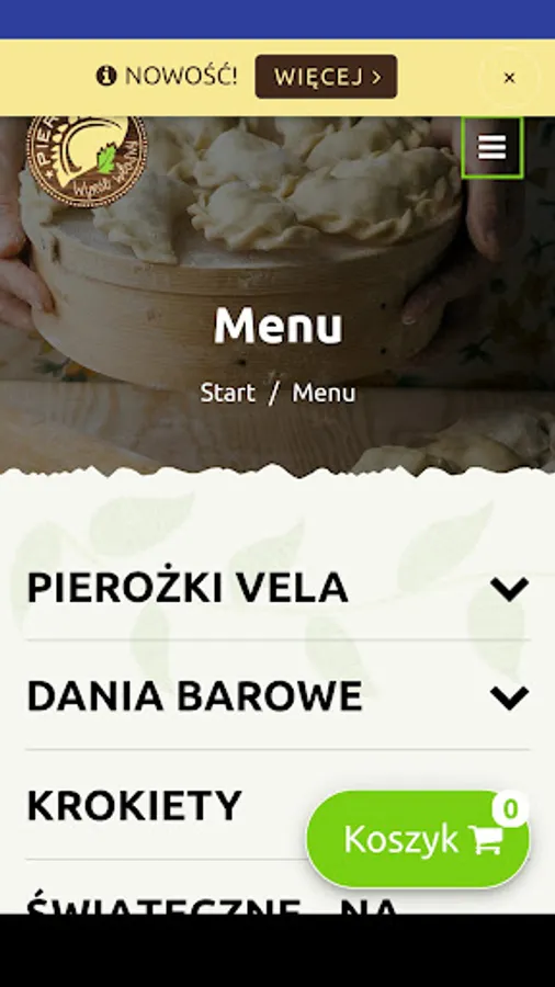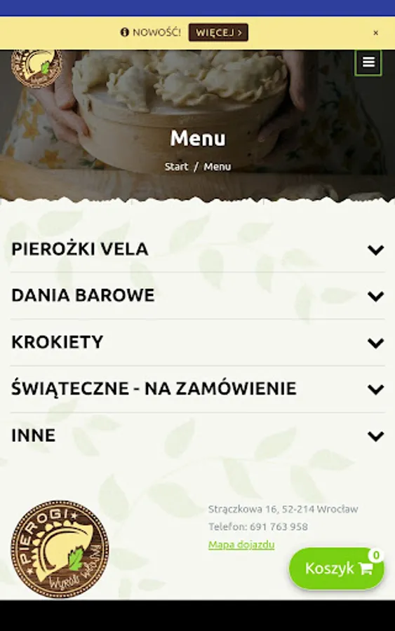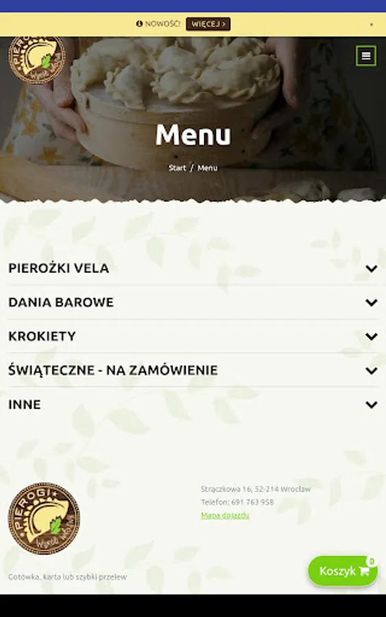 An application for ordering food from the Pierogi Vela restaurant in Wrocław.