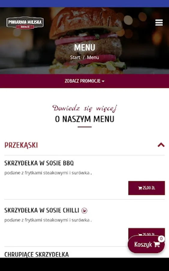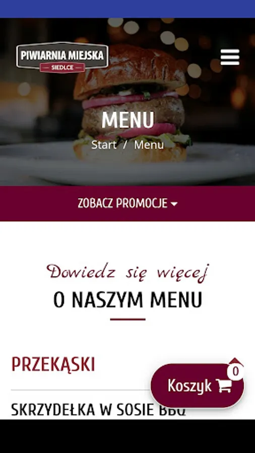 An application for ordering food from the Piwiarnia Miejska restaurant in Siedlce.