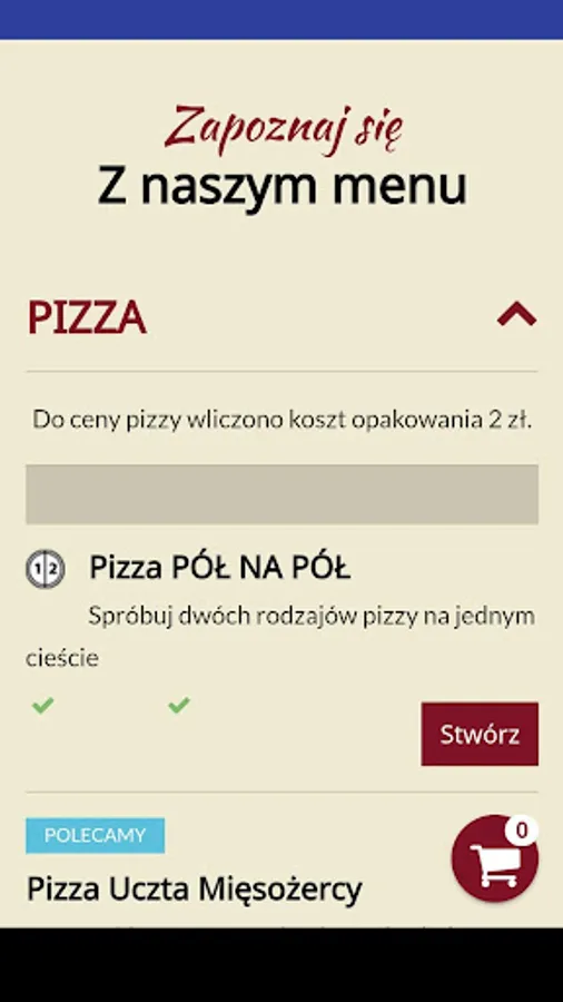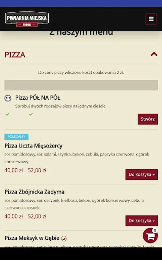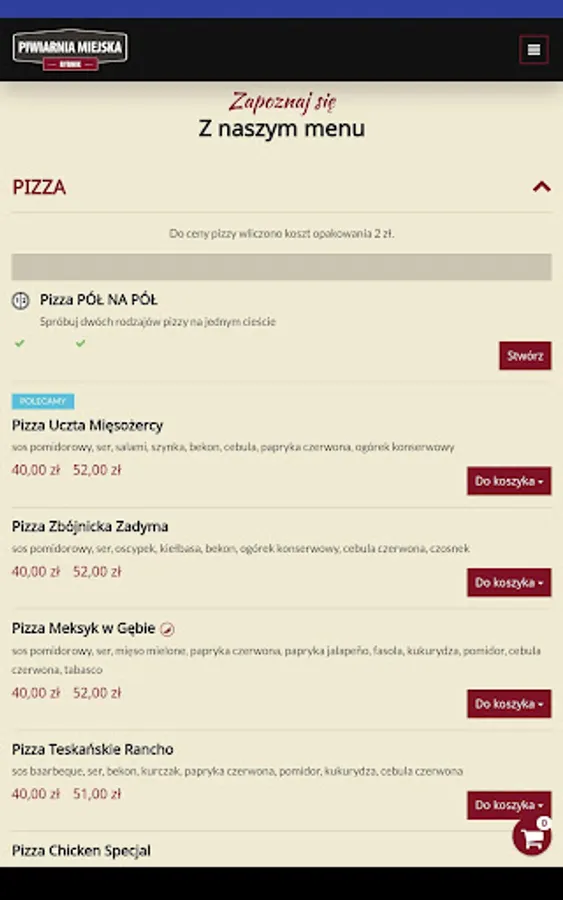 Application for ordering food from the Piwiarnia Miejska restaurant in Rybnik.