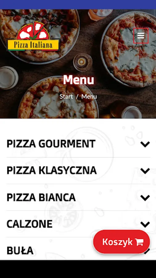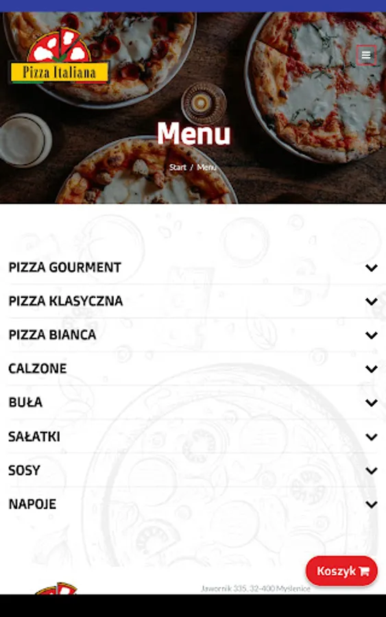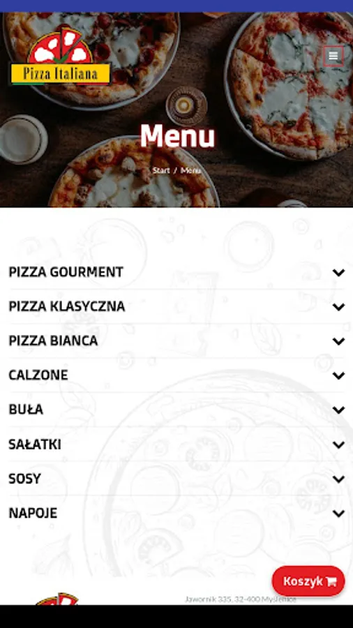 Application for ordering food from iPizza Italiana restaurants in Jawornik.