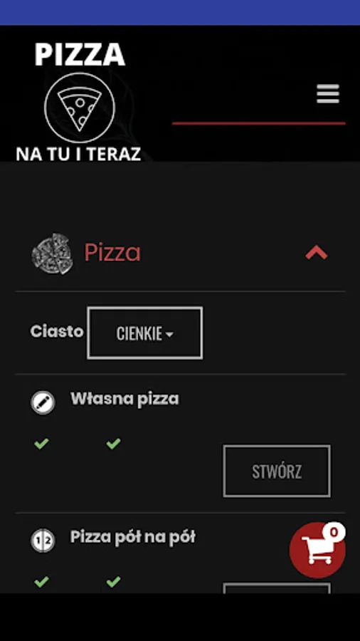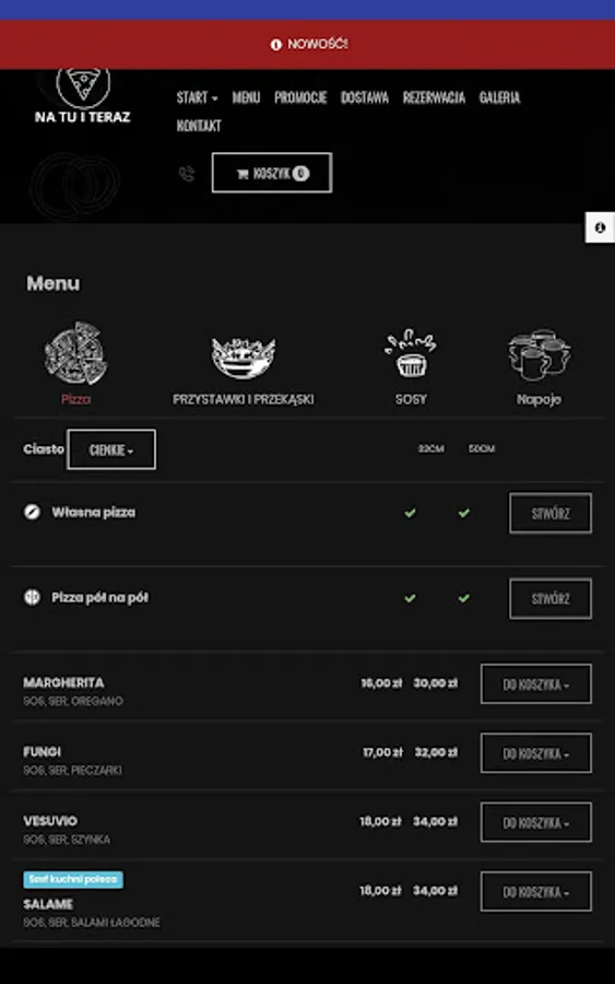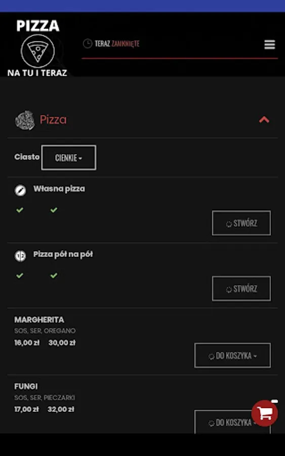Application for ordering food from a Pizza restaurant here and now in Zielona Góra.