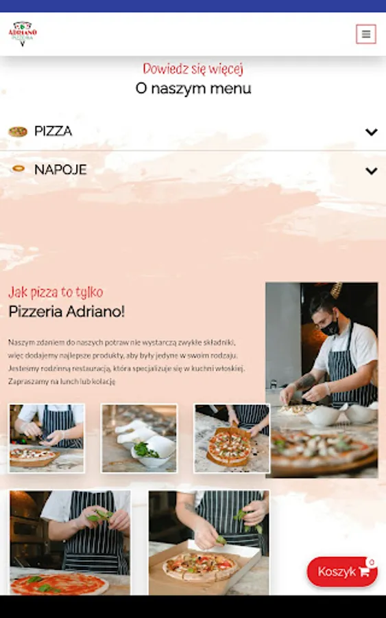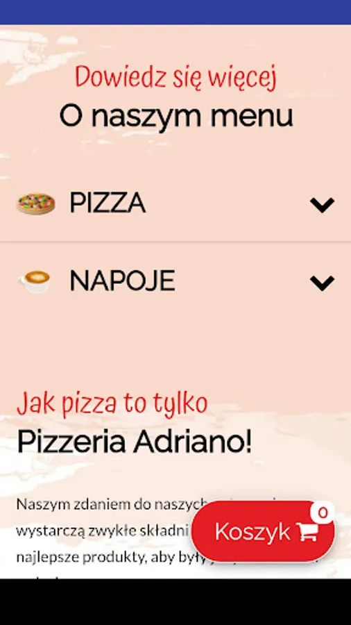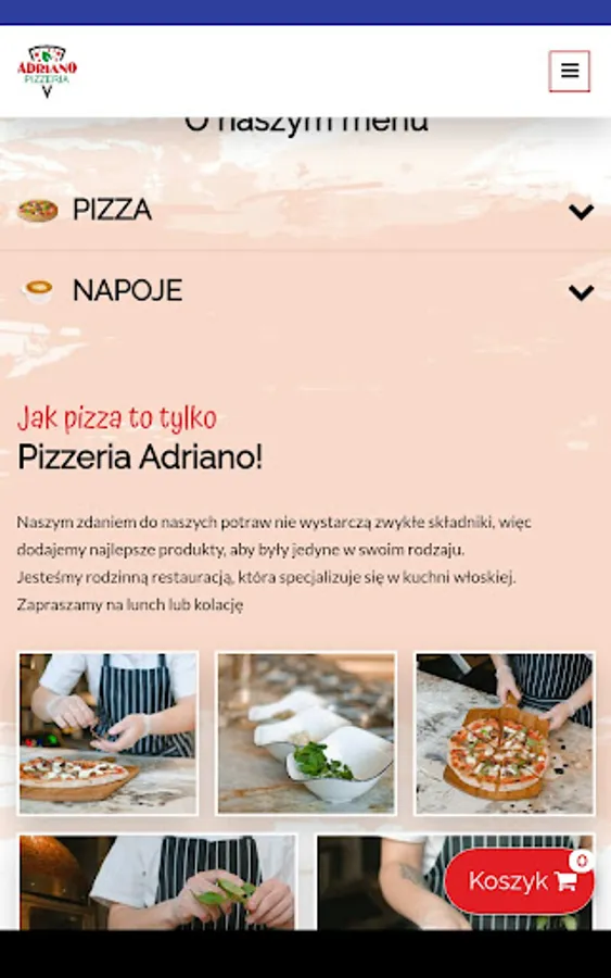 Application for ordering food from Pizzeria Adriano restaurant in Kielce.