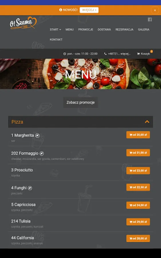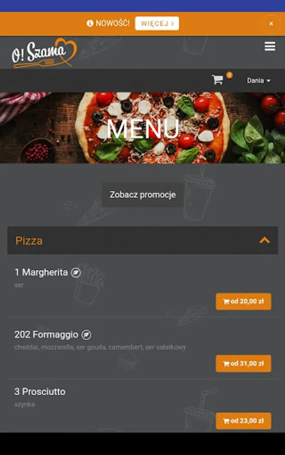 The application for ordering food from the restaurant O! Szama in the town of Tuliszków.