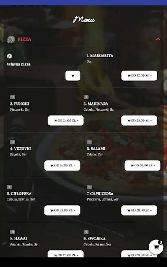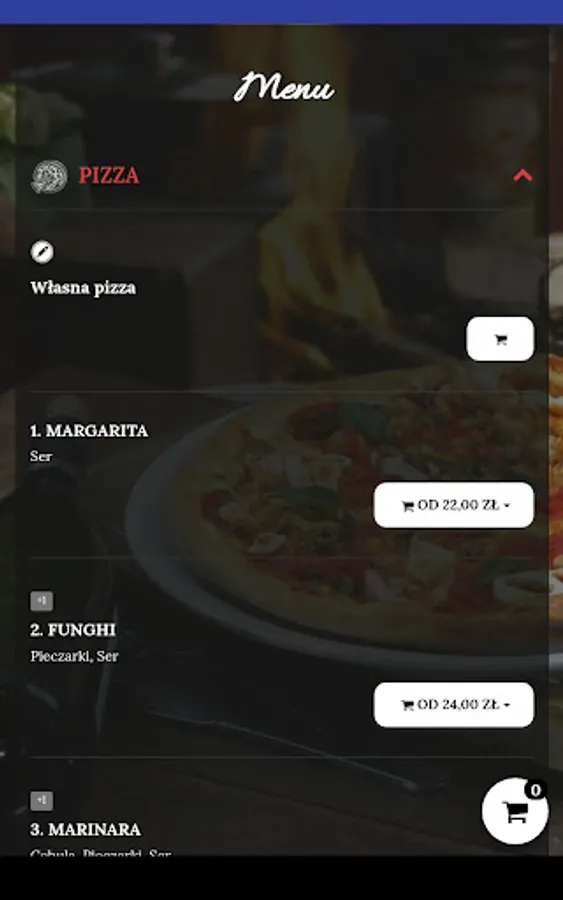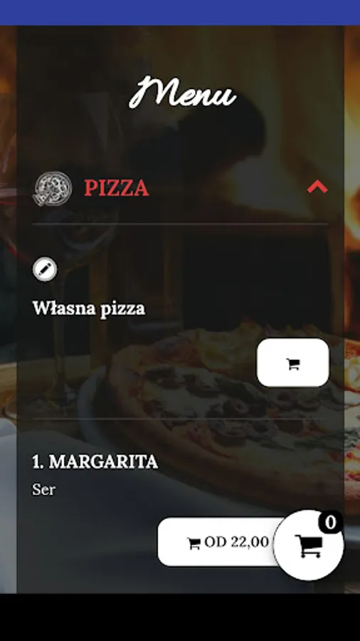An application for ordering food from the Pizzeria Czarna Perła restaurant in Gdynia.