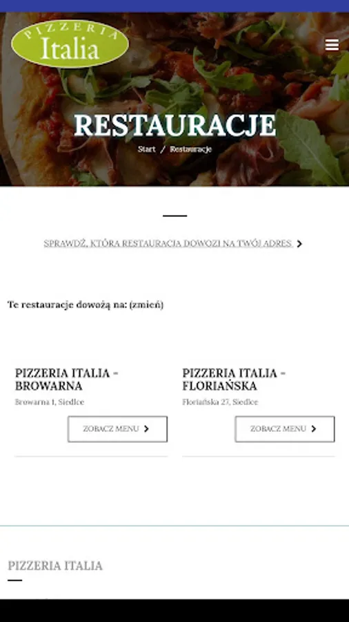 An application for ordering food from the Pizzeria Italia restaurant in Siedlce.