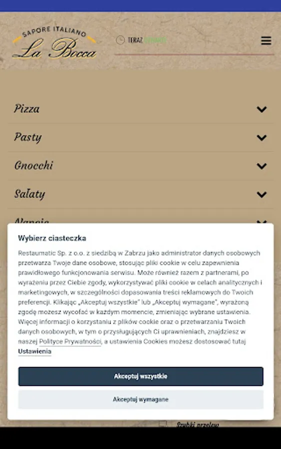 Application for ordering food from La Bocca restaurant in Gdańsk.