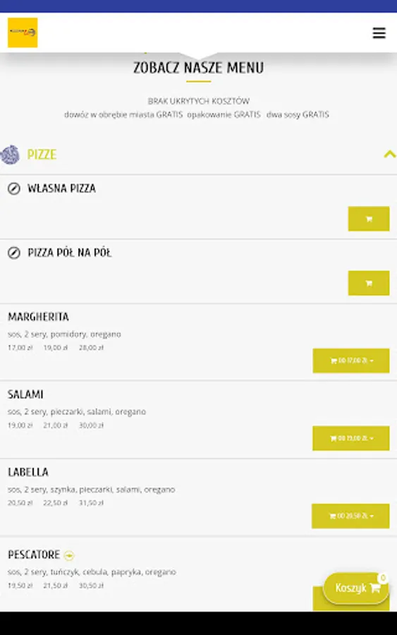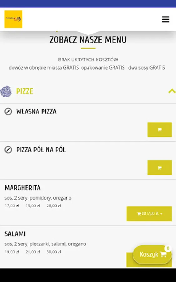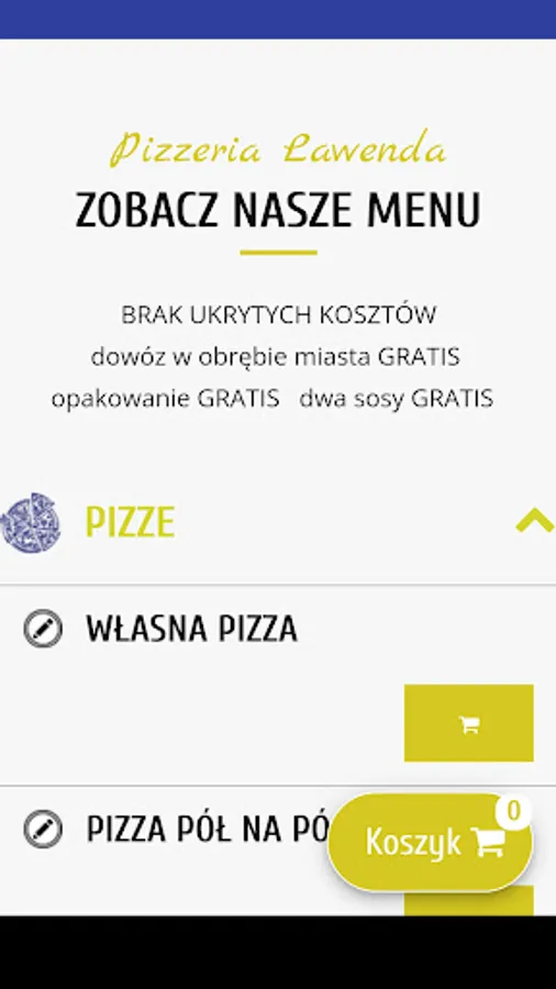 Application for ordering food from the restaurant Pizzeria Lawenda in the city of Przeworsk.