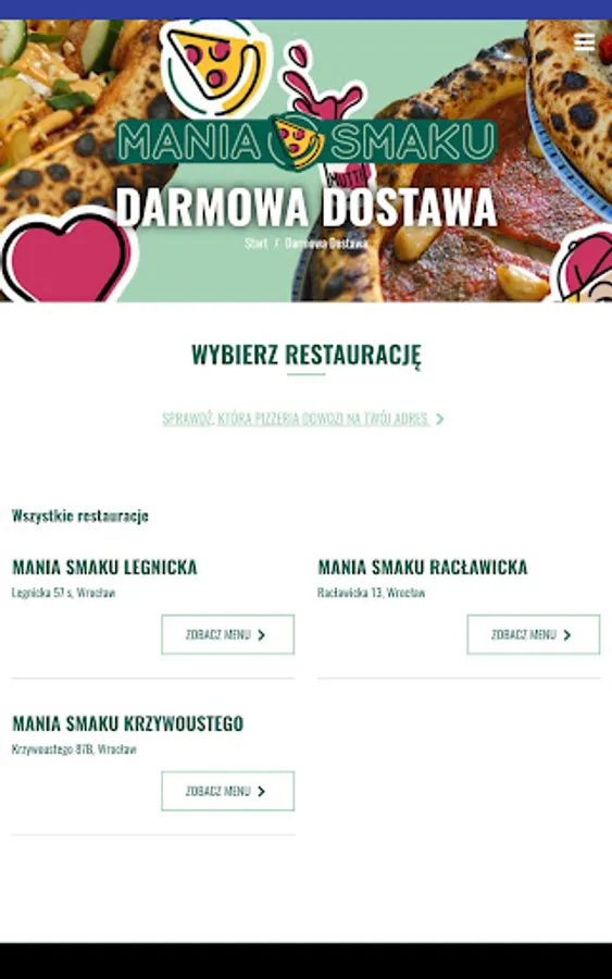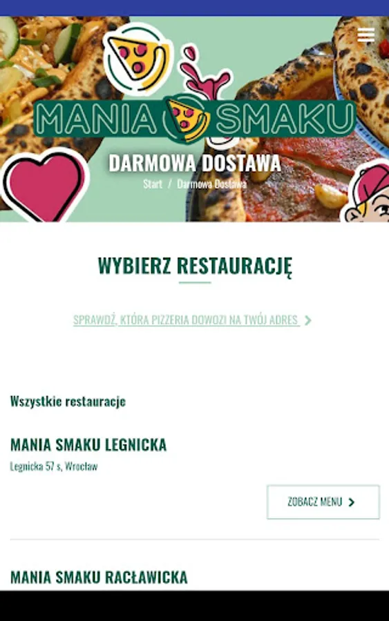 An application for ordering food from the Mania Smaku restaurant in Wrocław.